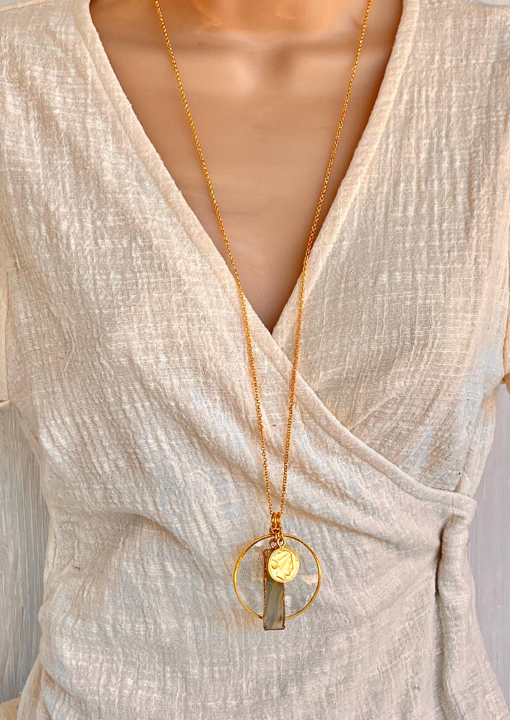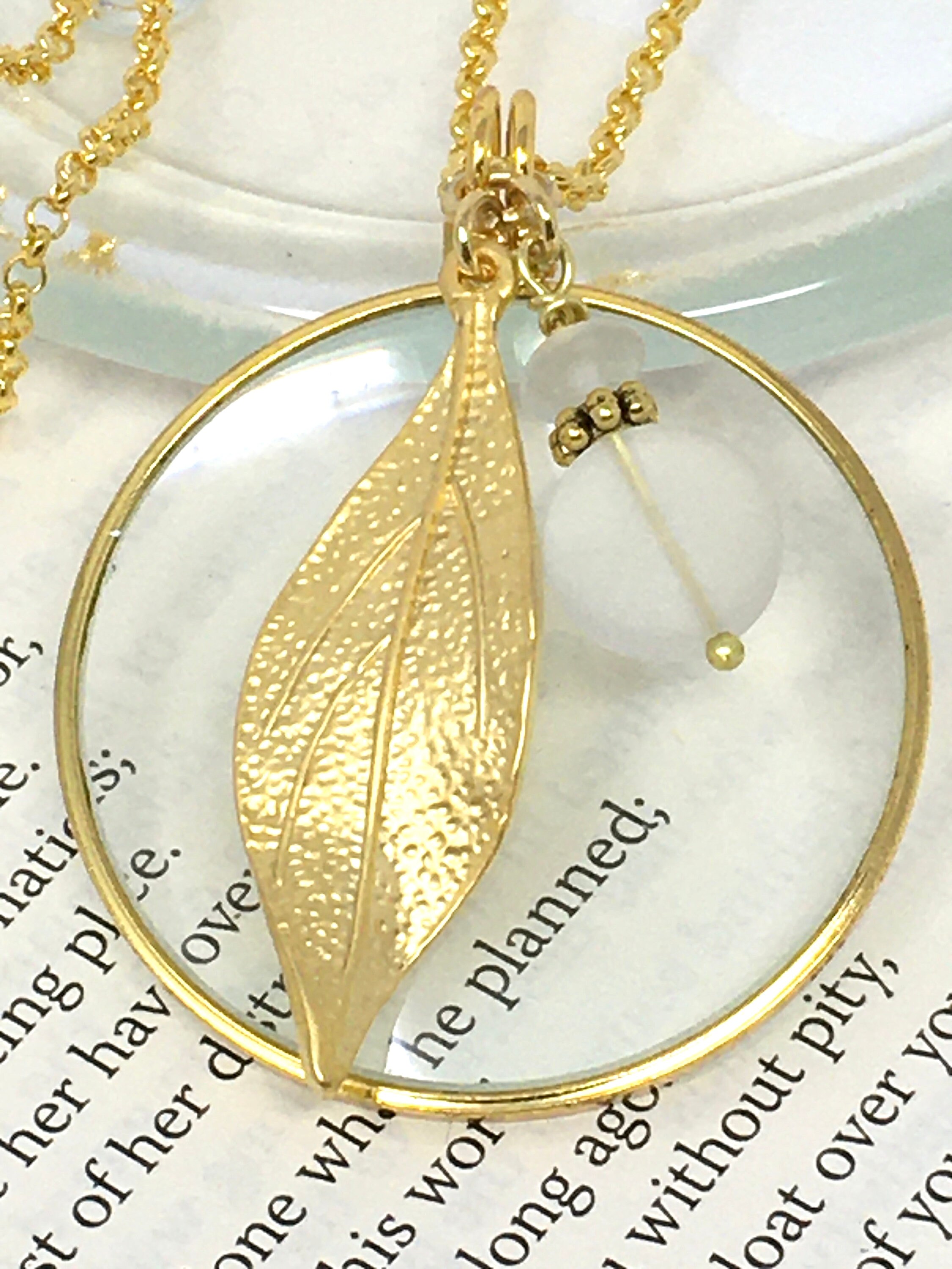This gold magnifying necklace is not only fashionable it is also convenient for viewing your phone, menus, price tags, etc. So leave your reading glasses at home because this is the modern solution to the monocle.