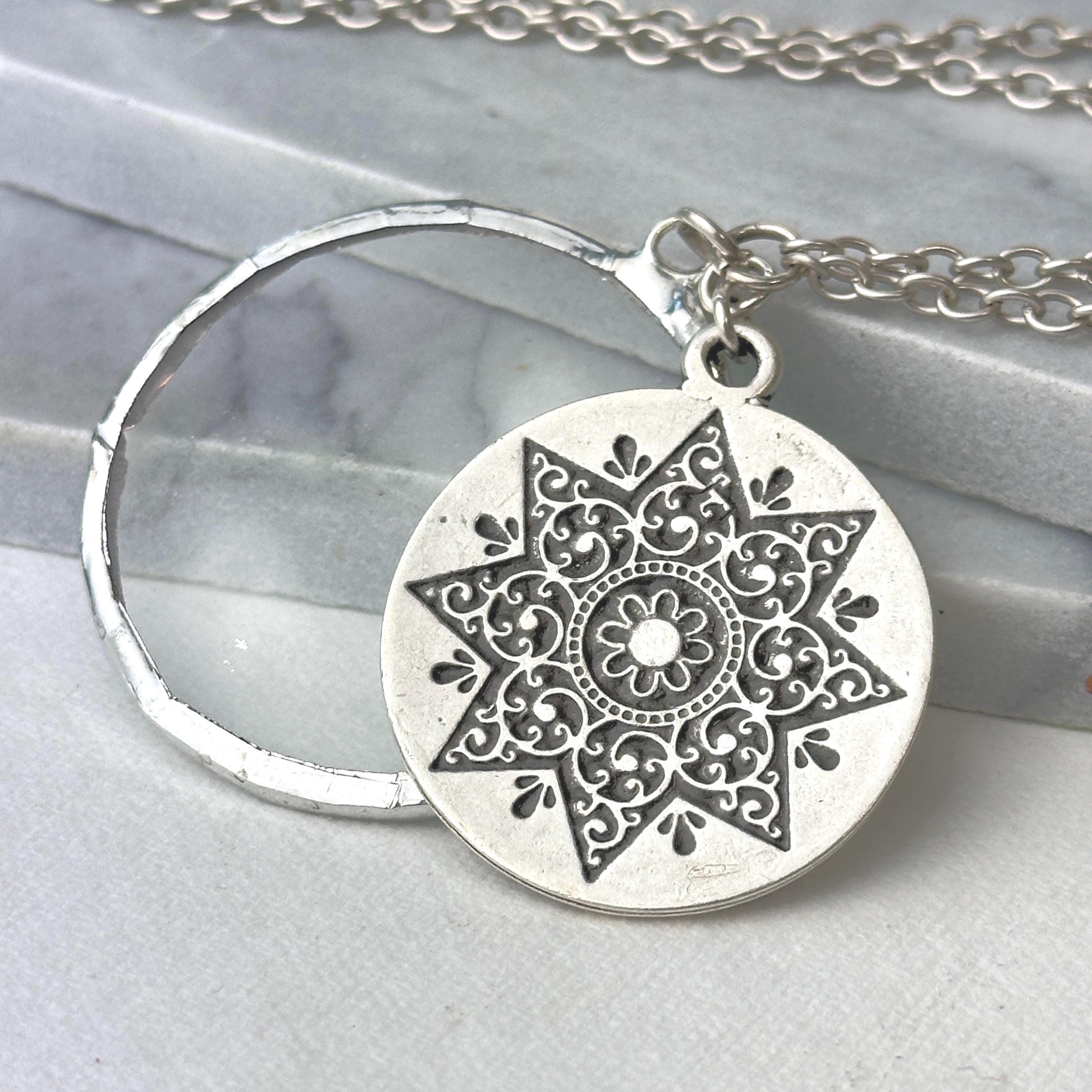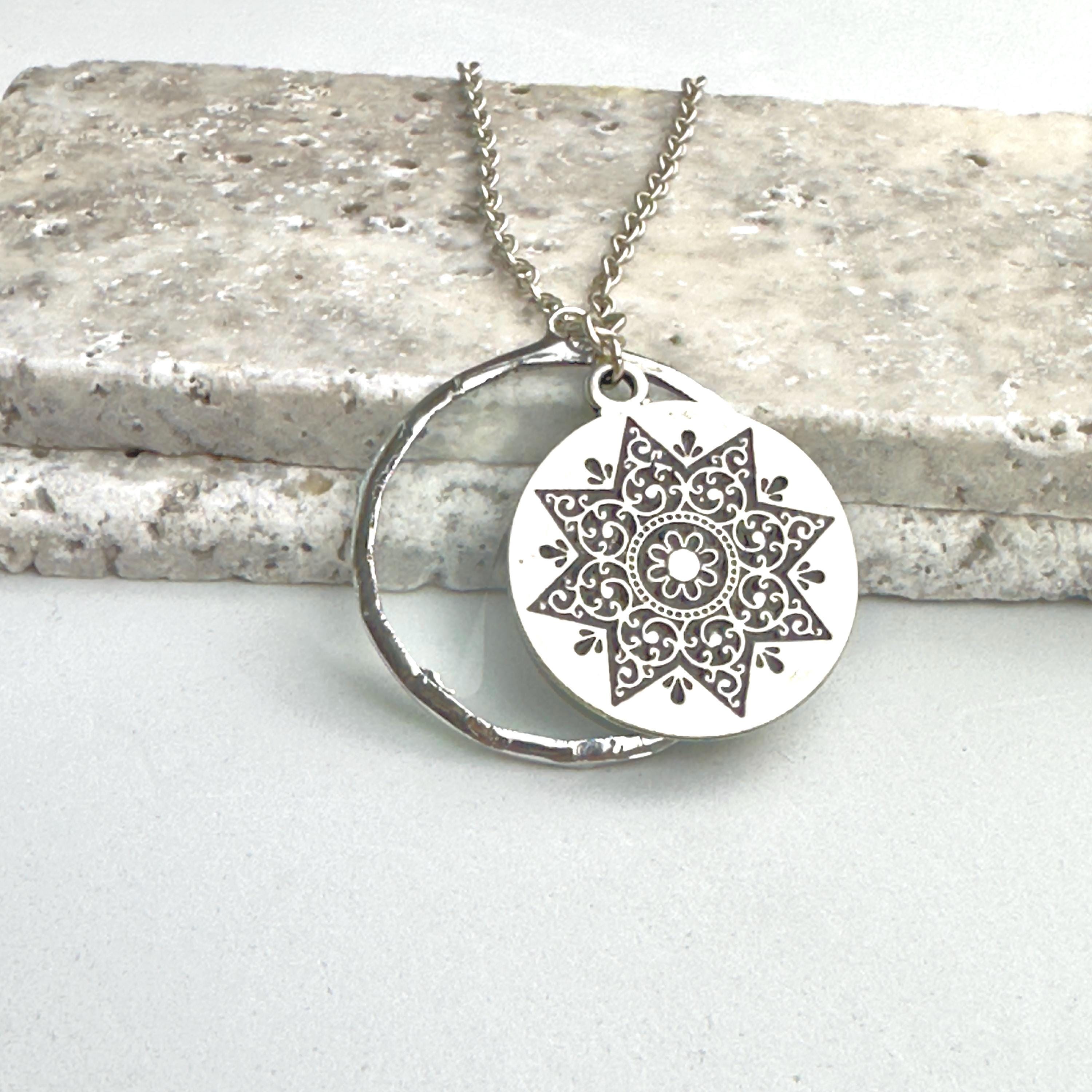 o Decorative silver plated Mandala pendant.