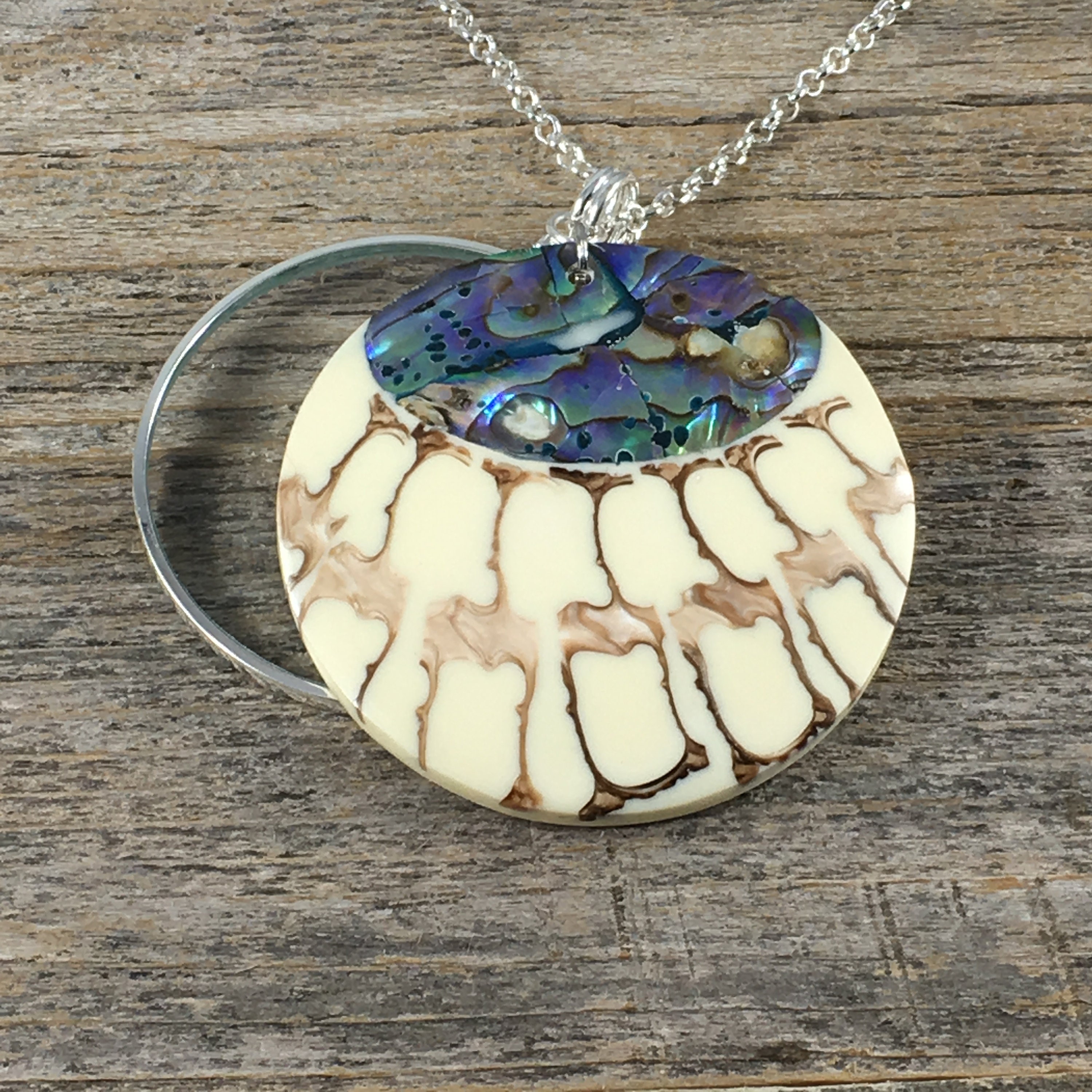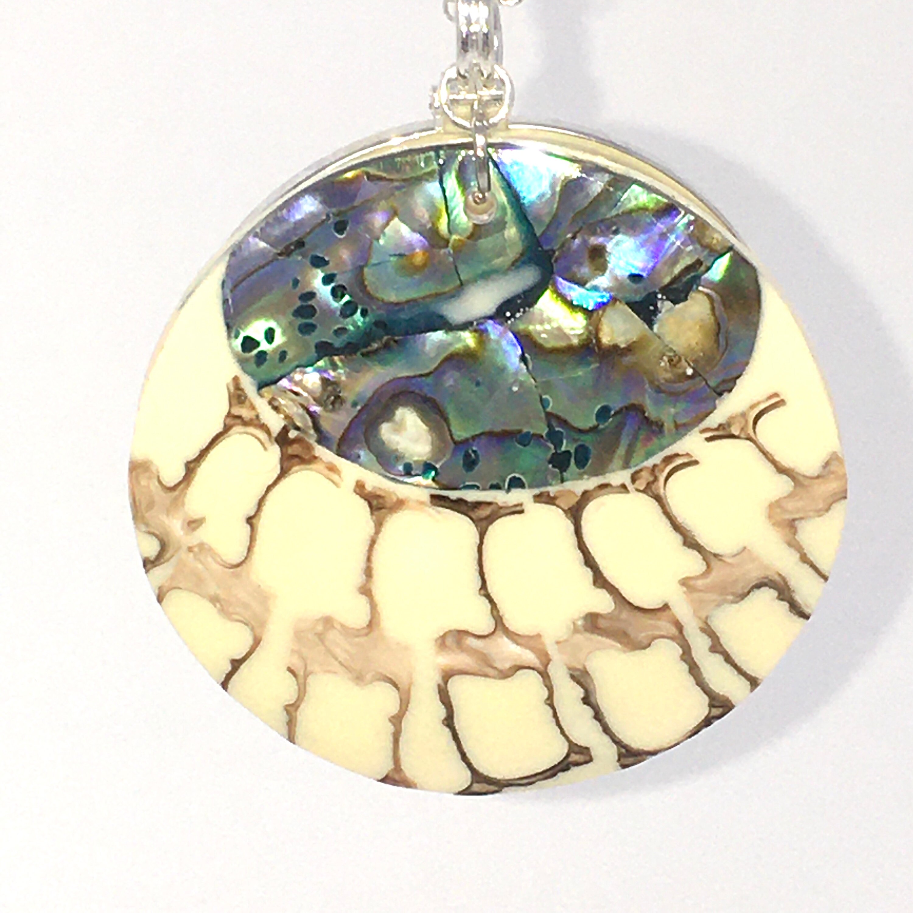 This magnifying glass necklace with shell detail pendant provides an alternative to reading glasses with its 5X magnification lens measures 1 3/4 inches. The pendant is hung on a 30" rolo style chain giving plenty of room to view your phone, menu, price tags, etc.