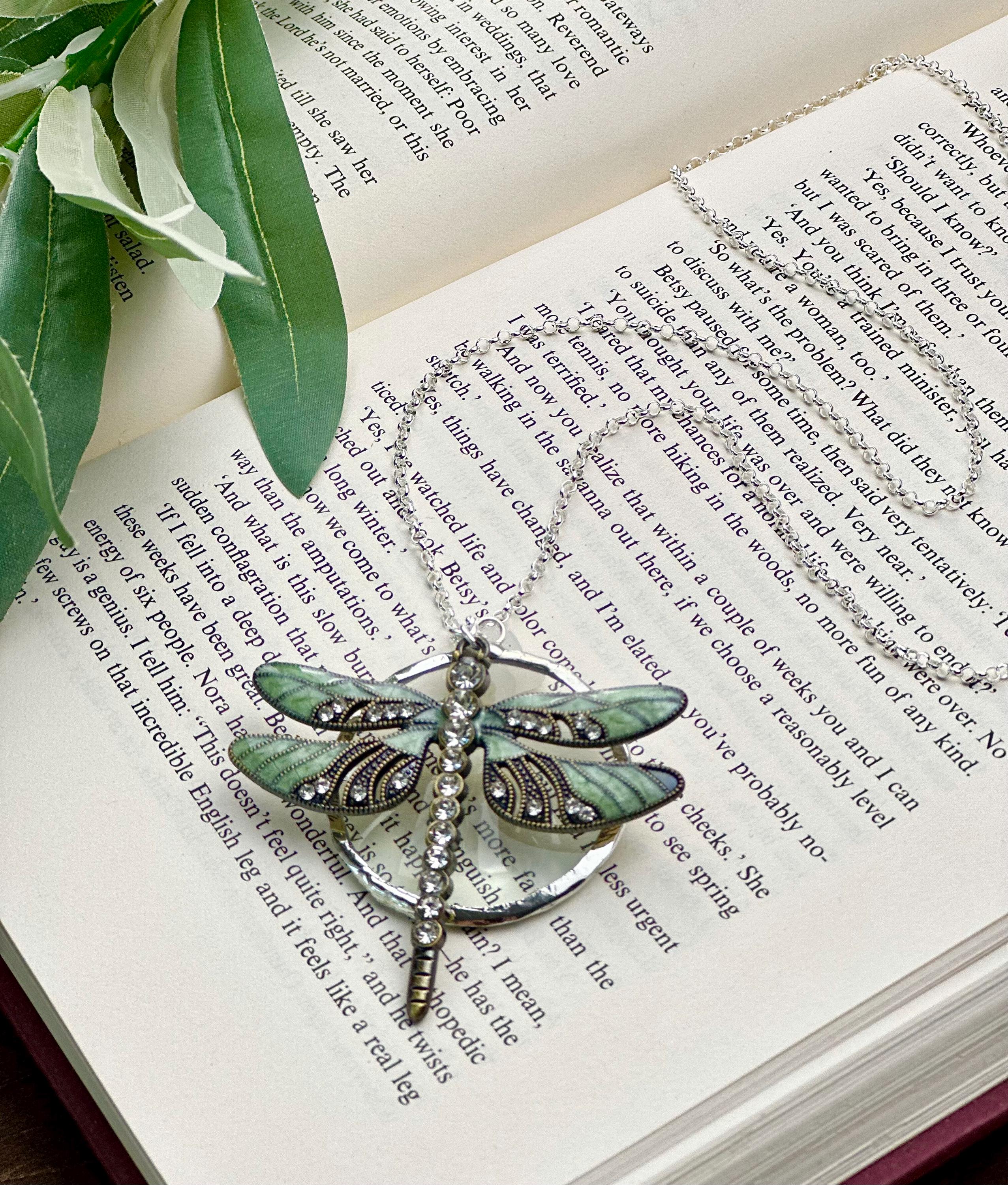 The dragonfly magnifying glass necklace is beautiful! I use it at work to help read the labels on supplement bottles and have already received many compliments.
